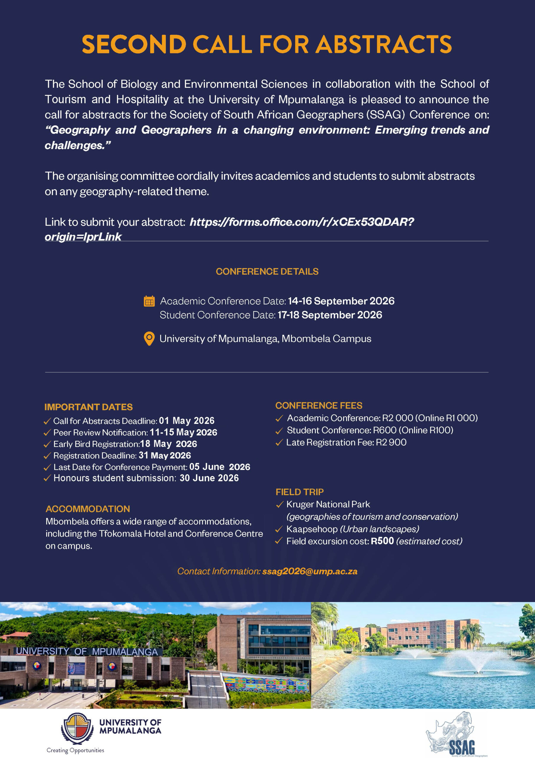 Join leading academics and emerging scholars at the SSAG Conference as they unpack the evolving world of geography and its real-world impact. Set against the vibrant backdrop of the University of Mpumalanga, this conference is a space for connection, insight, and forward-thinking dialogue